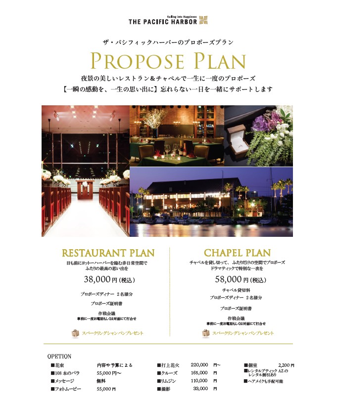 ウエディング レストランプロポーズプランのご案内