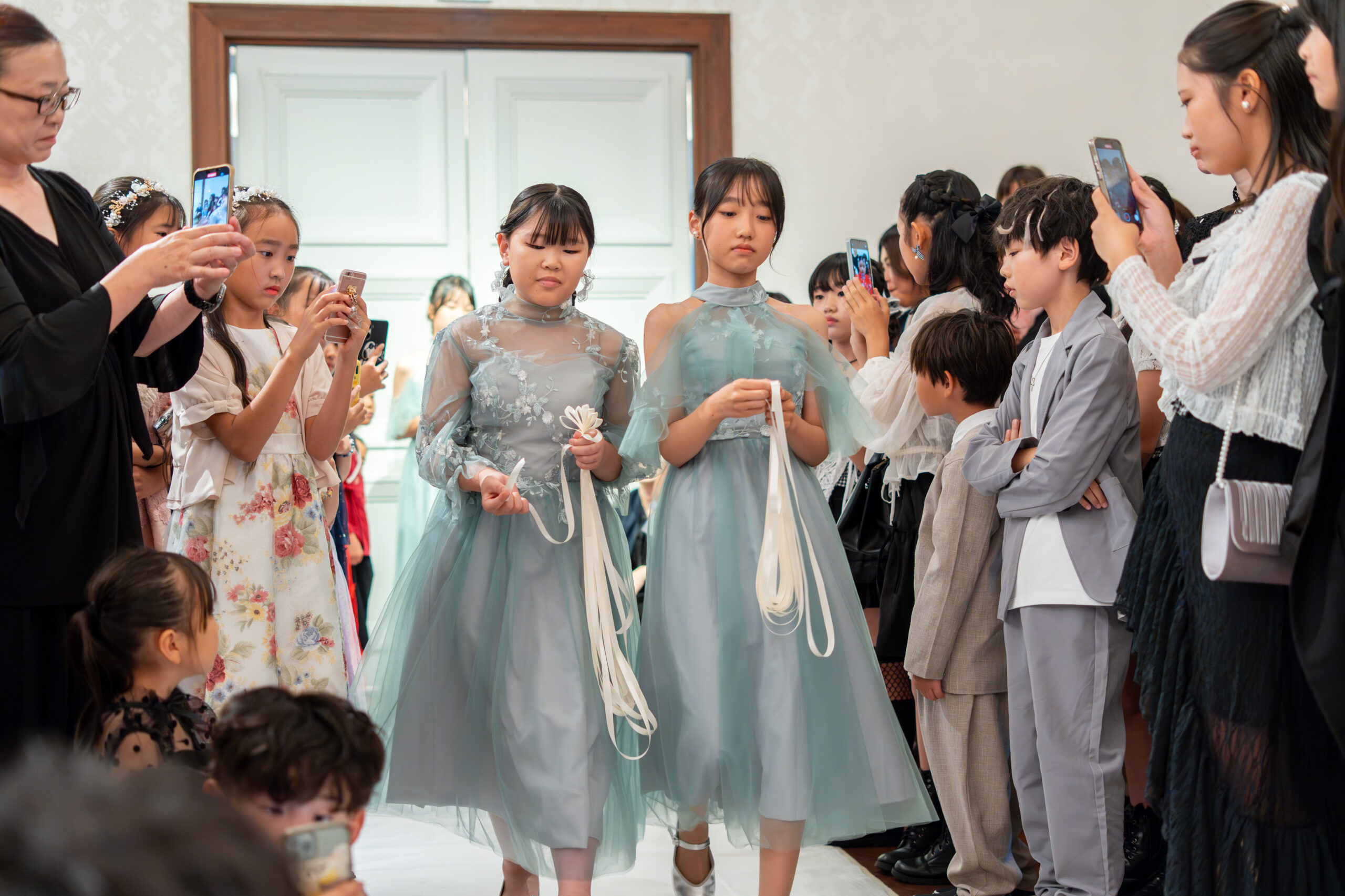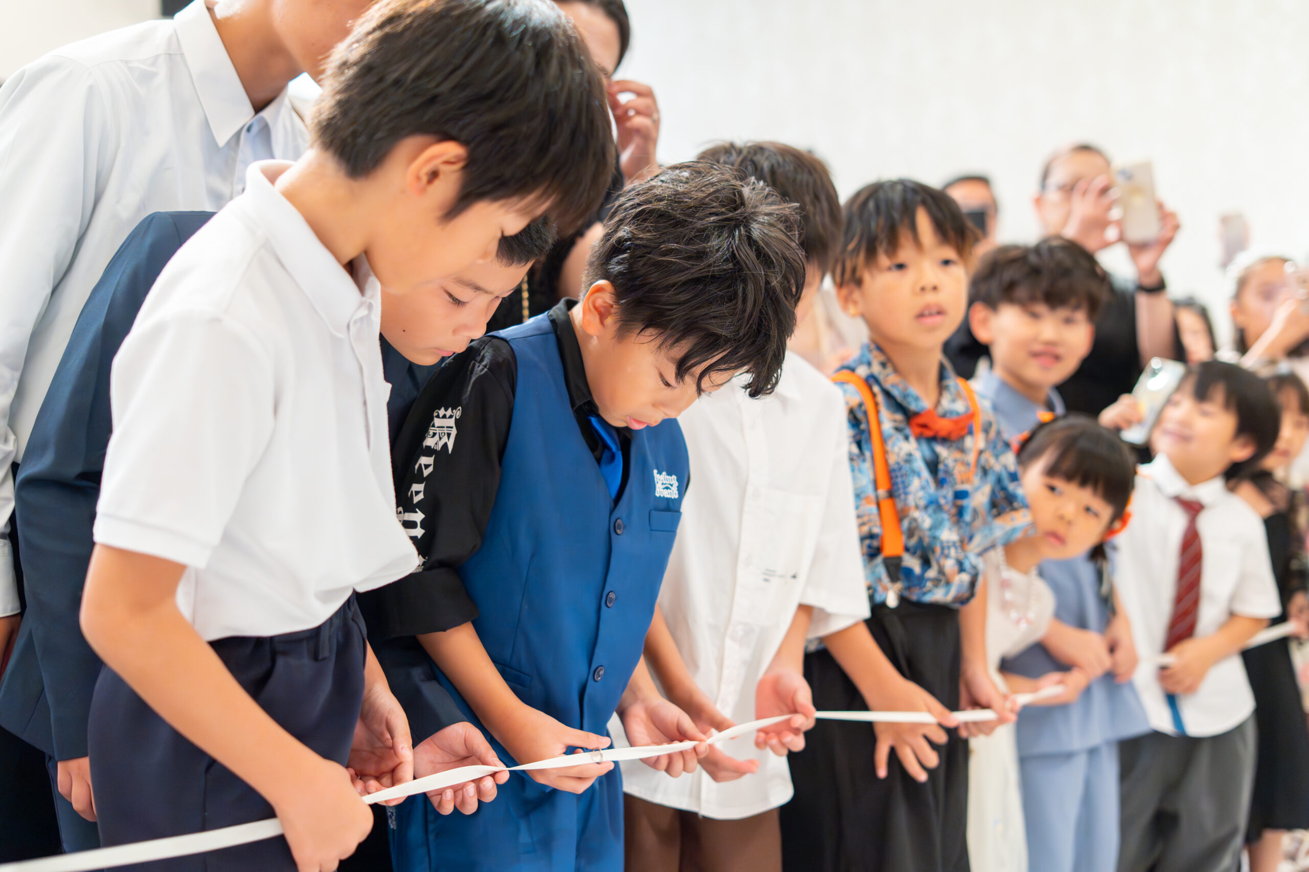 ブライズメイドは生徒のお子様たち。ベールを持って一緒に入場。