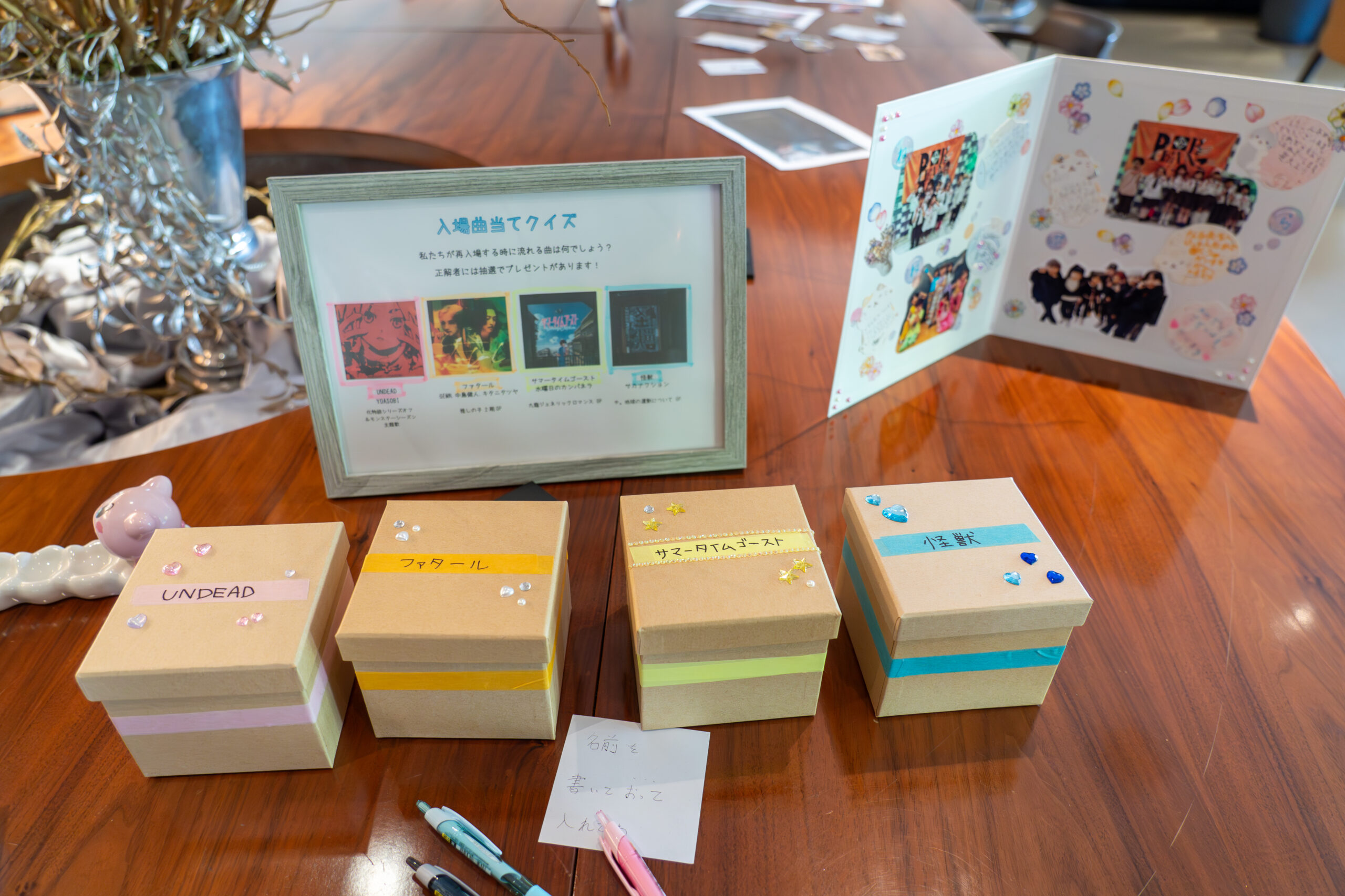 受付にはゲスト参加のクイズBOX。入場曲は?新婦のドレスの色は?ワイワイしながら抽選BOXへ。