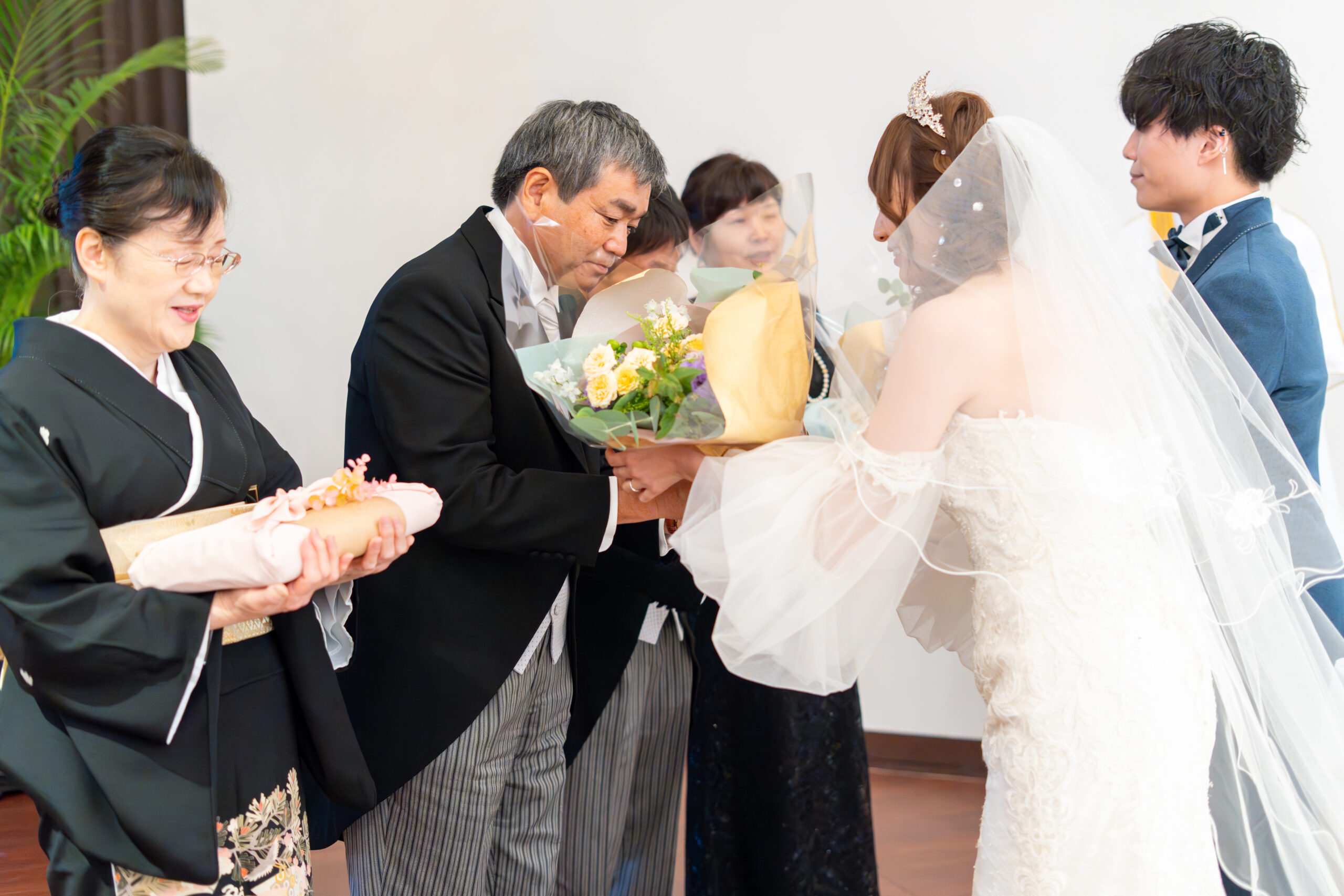 そしてセレモニーのなかで、親御様にも感謝の気持ちをお二人から伝える時間を。