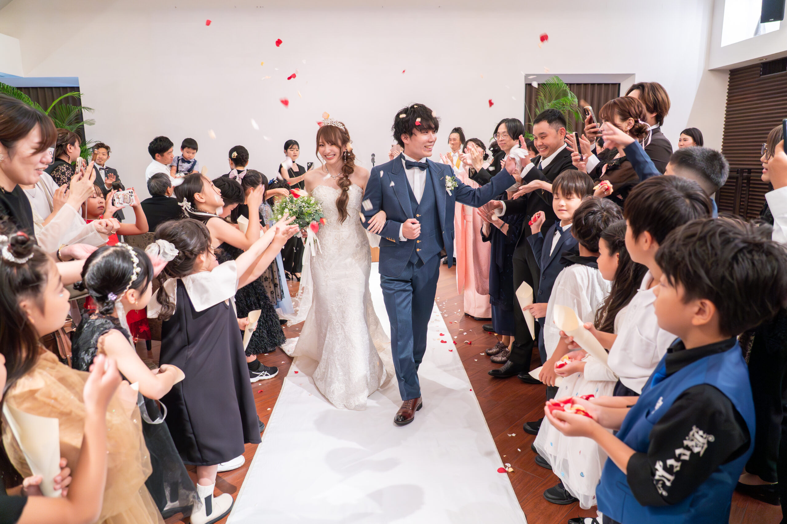 セレモニーの退場は、フラワーシャワーと拍手で祝福♡