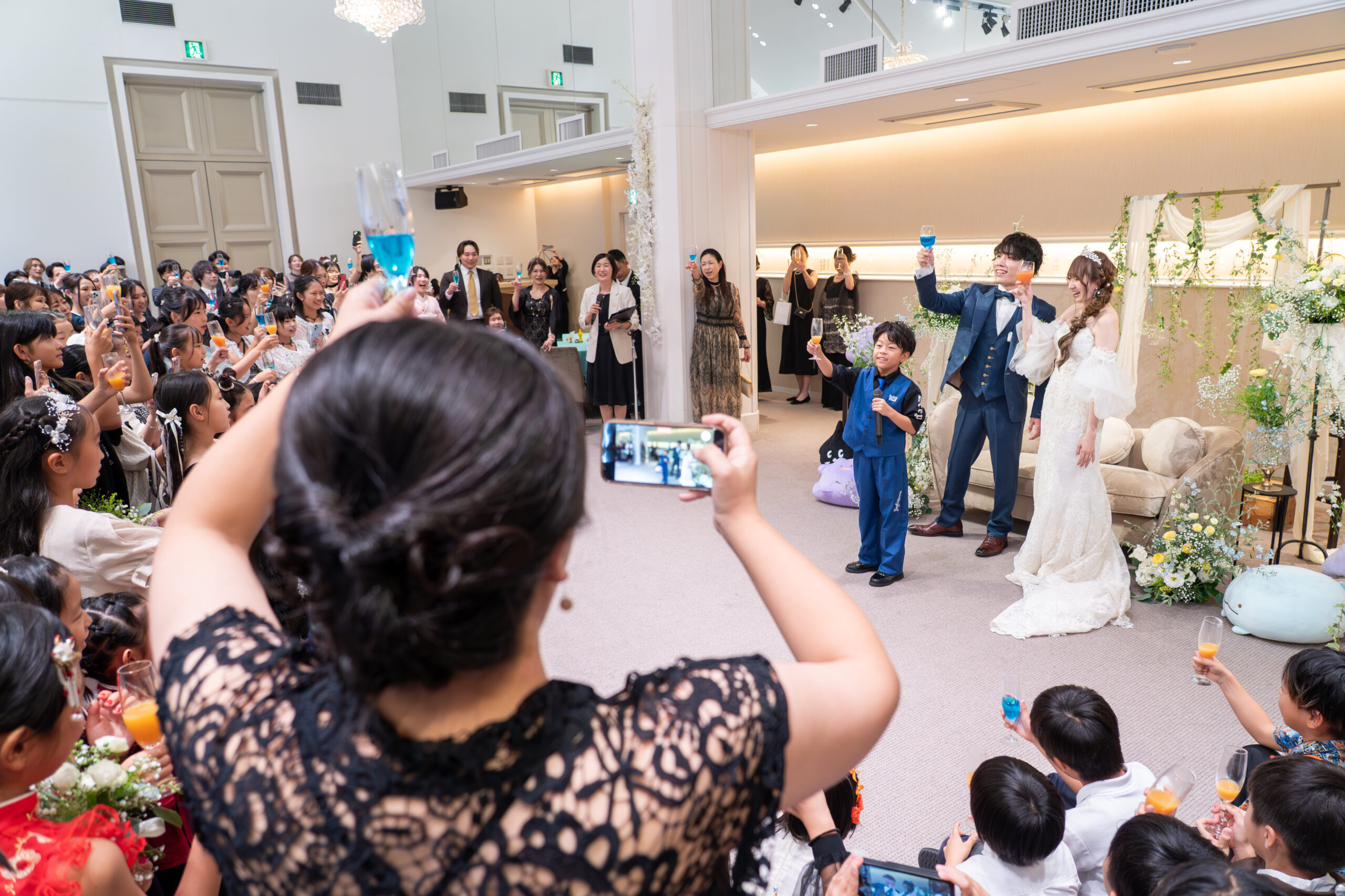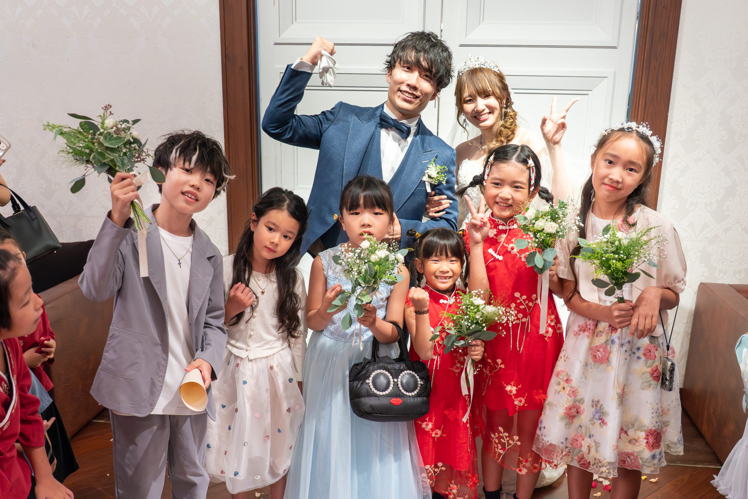 初めてのブーケトスにドキドキのお子様に、もうひとつサプライズ。