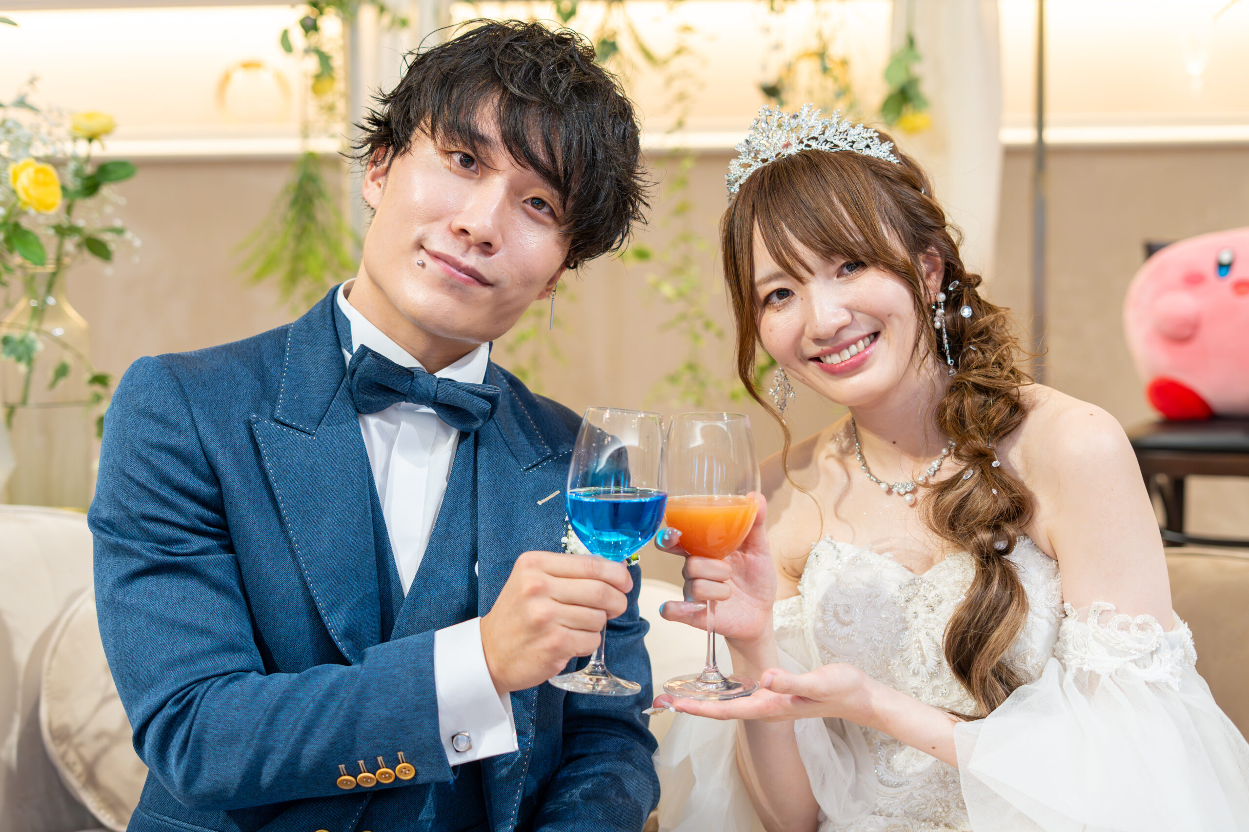 乾杯用ドリンクは、お二人が好きな色とダンススタジオのイメージカラーで🥂