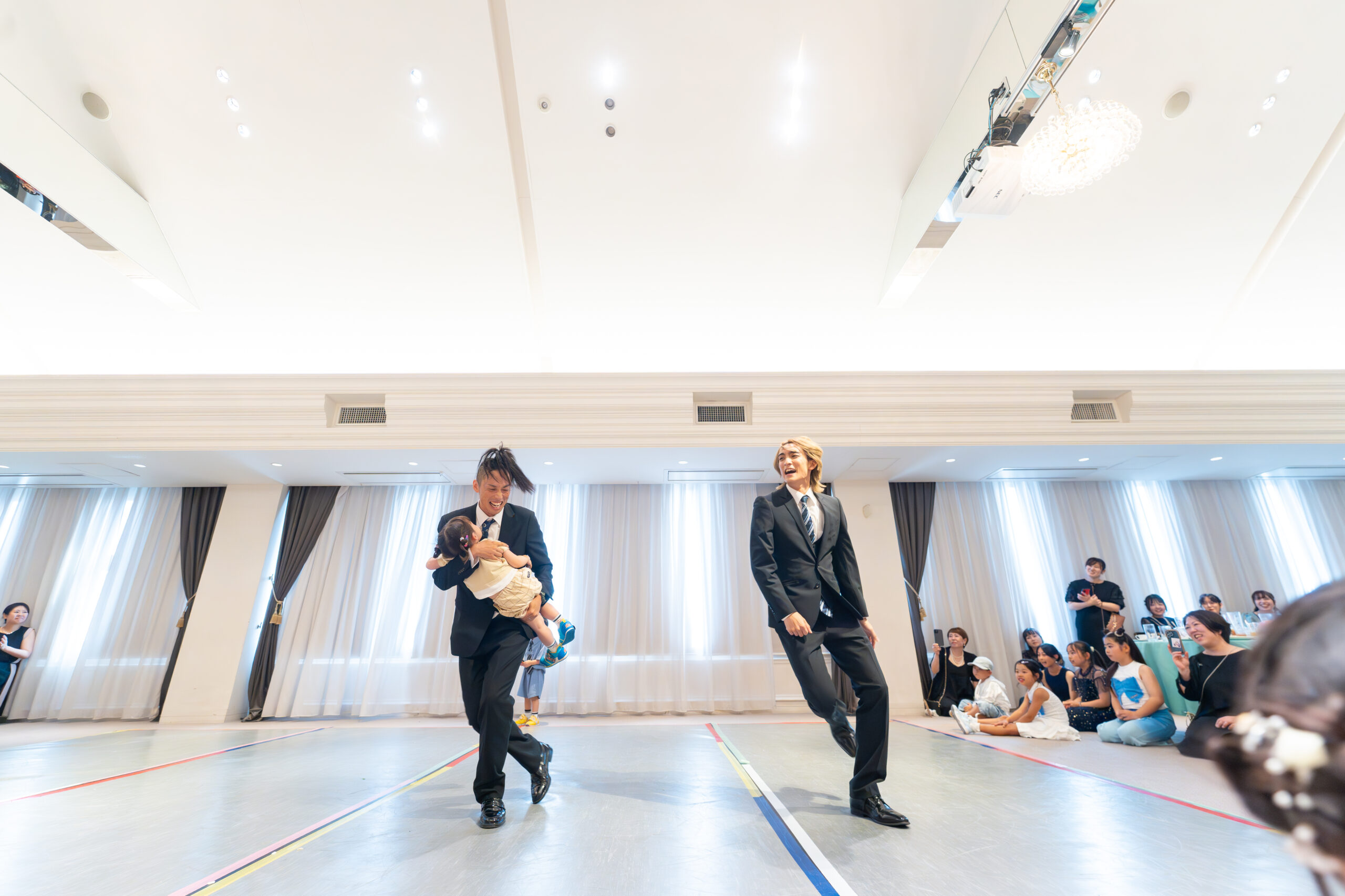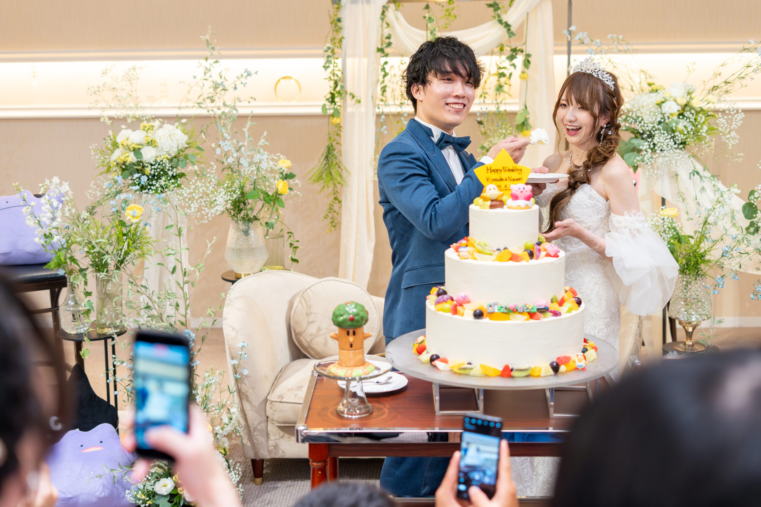 オリジナルケーキの入刀やサプライズエスコート退場をし、パーティー後半へ。